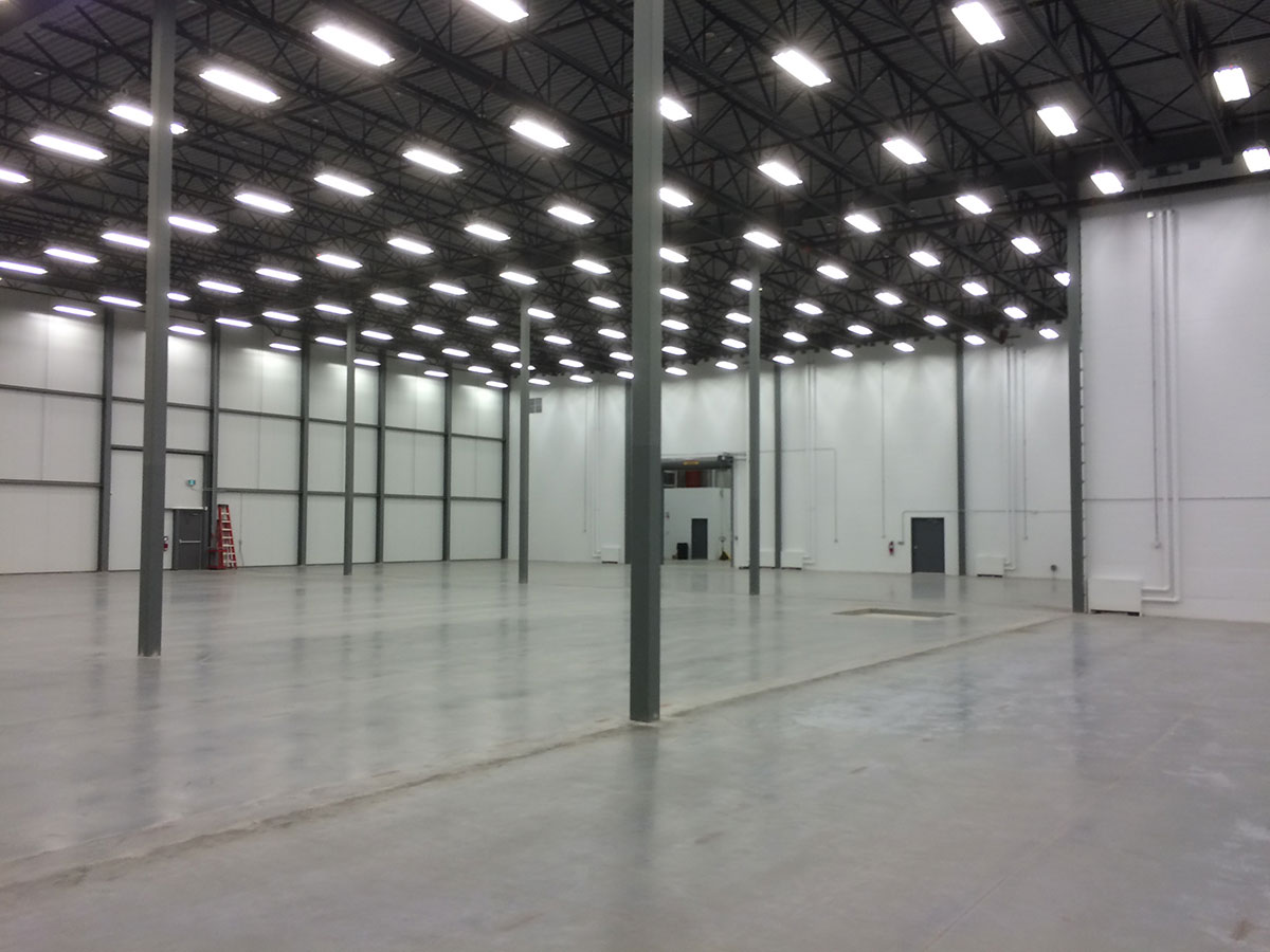 - Cast-in-place concrete foundation, structural steel, pre-manufactured insulated concrete panels and loose laid ballasted EPDM roofing