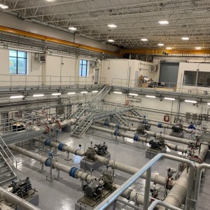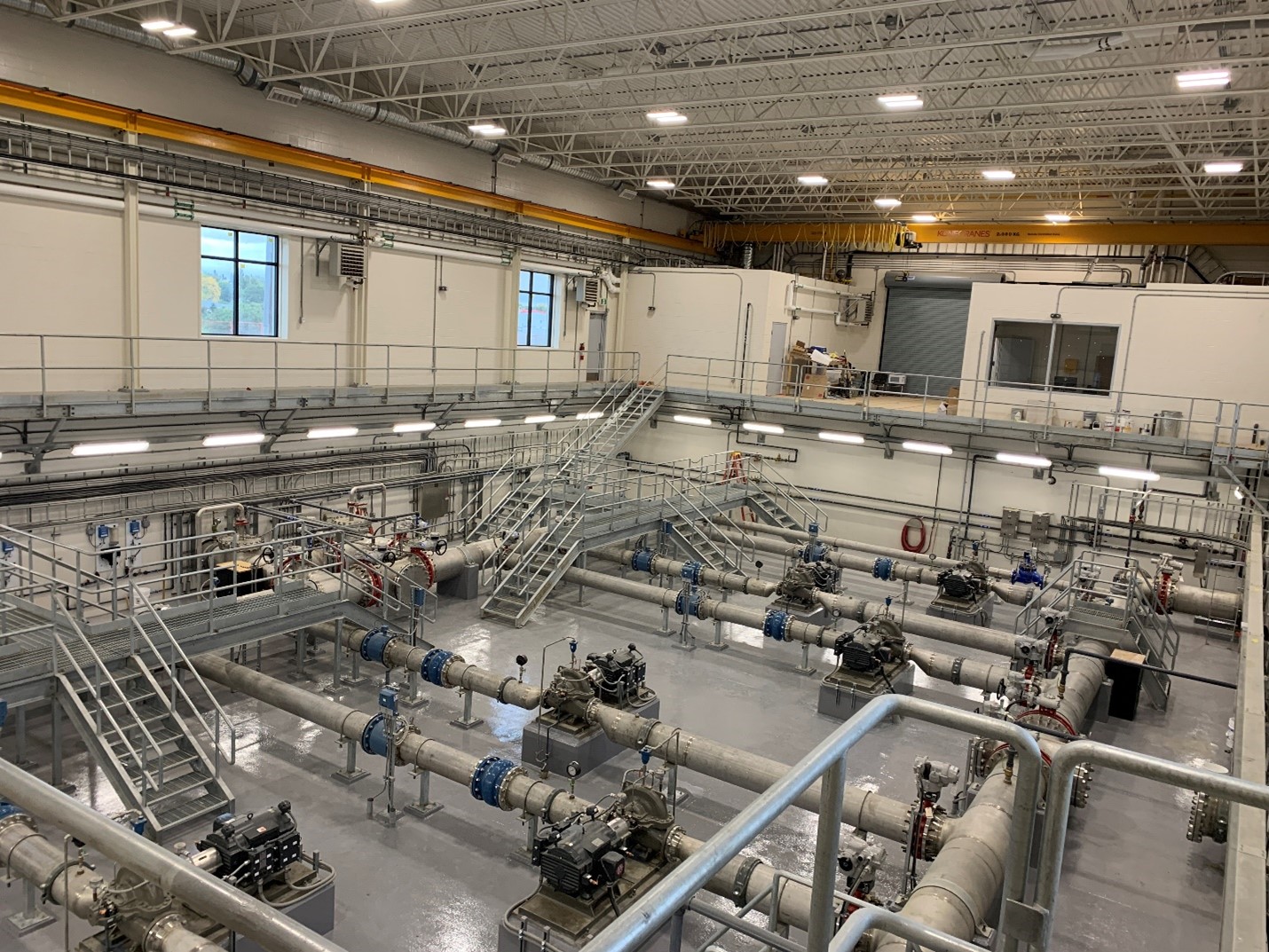 - New 787 cu. m. pumphouse houses 6 - 125 HP distribution pumps and associated valves and piping