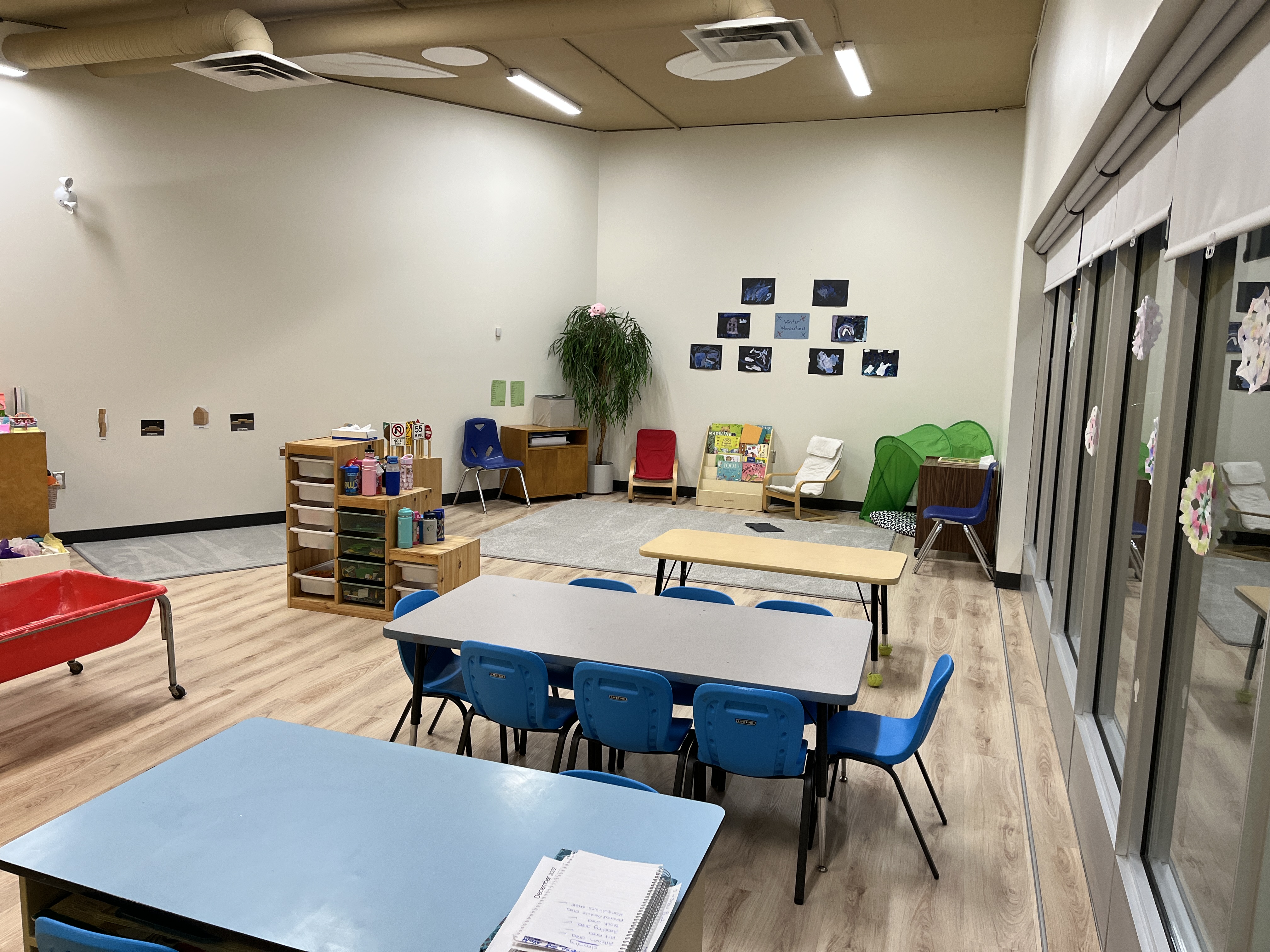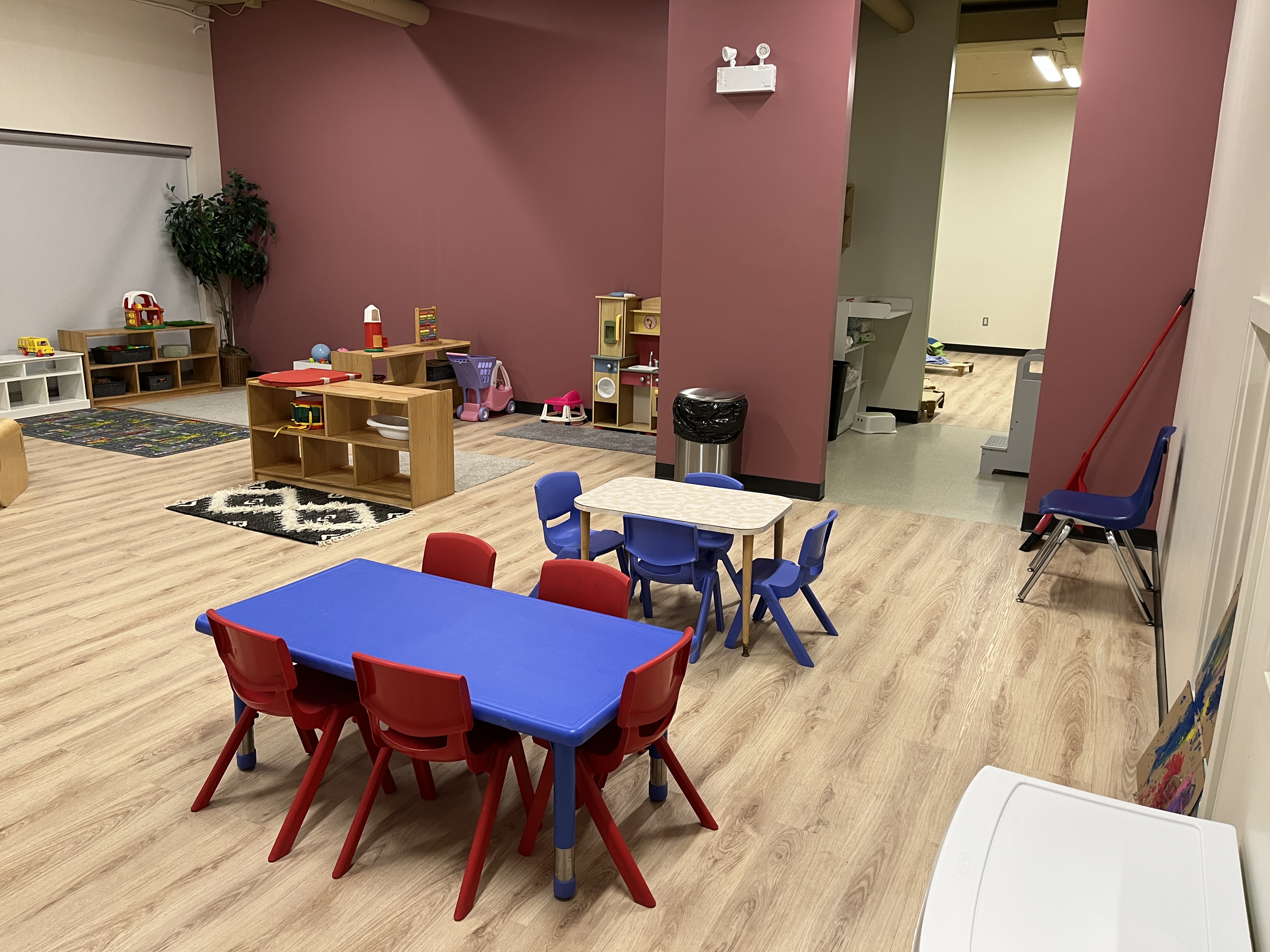 - Office, staff room, large kitchen, washrooms, laundry/janitor facilities, and open area for gross motor function for the children