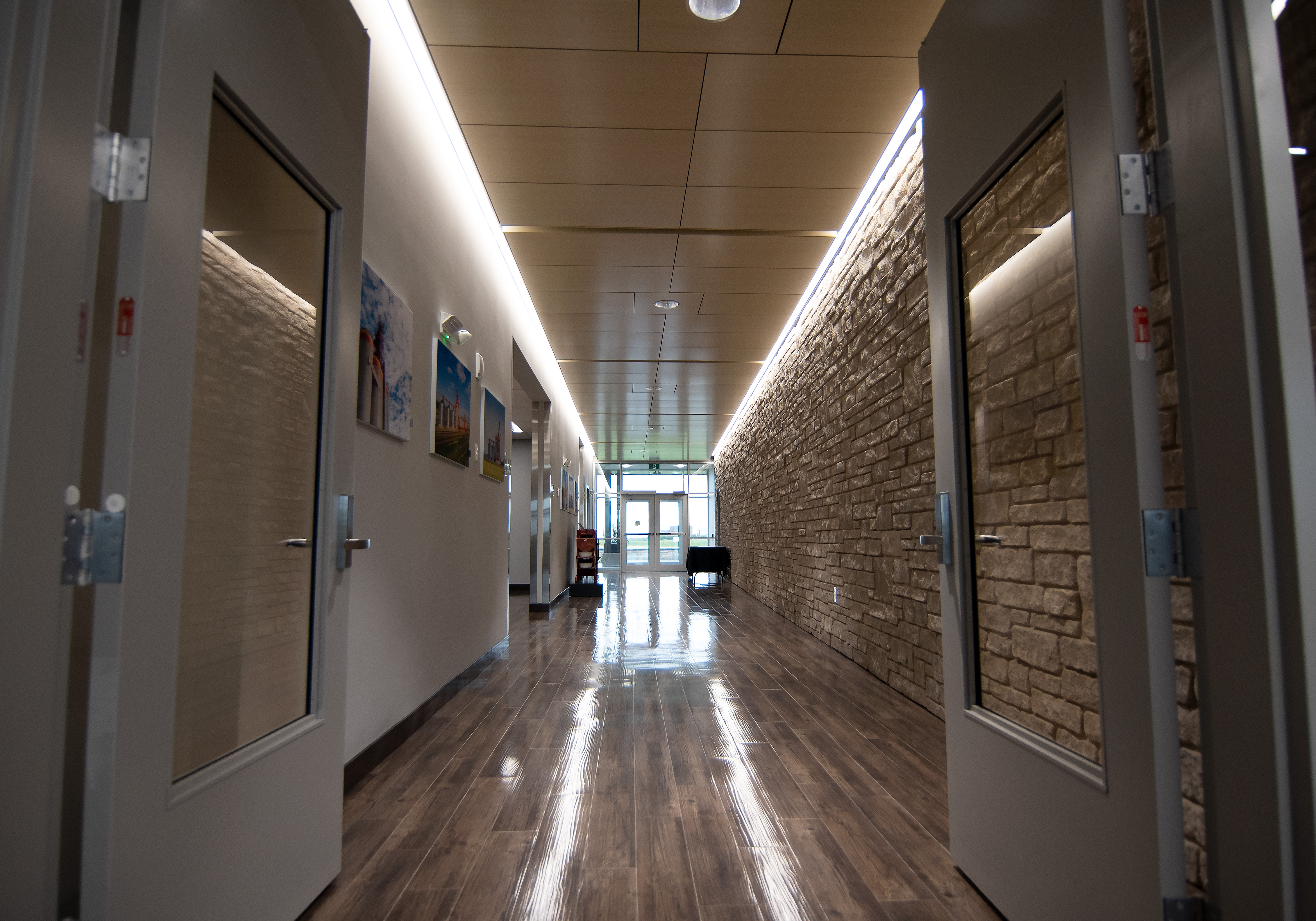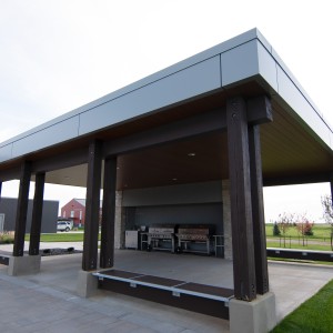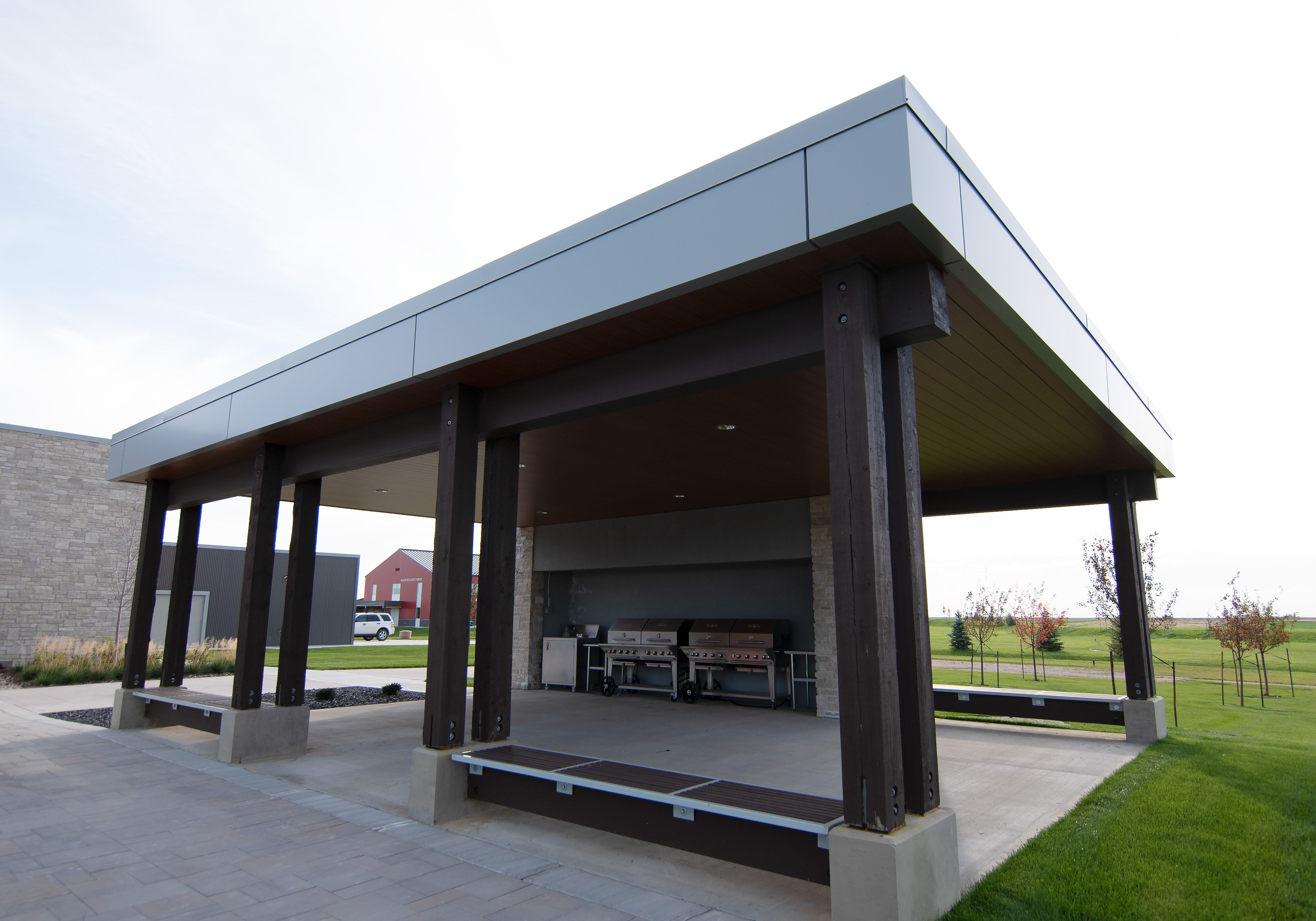 - Exterior design finishes included Indiana Lime Stone, red metal cladding, composite panels, Longboard soffit, Prodema wood panels