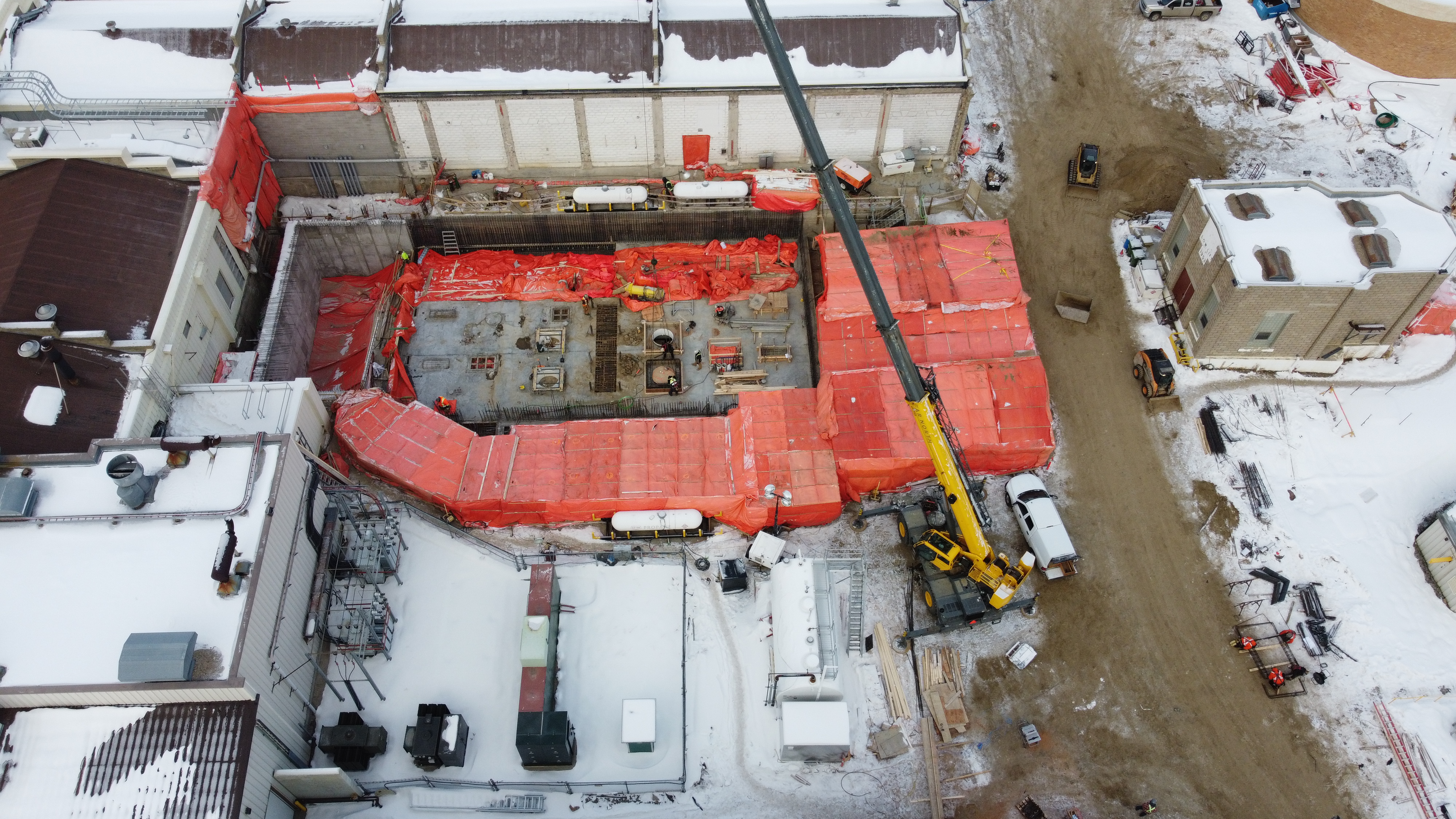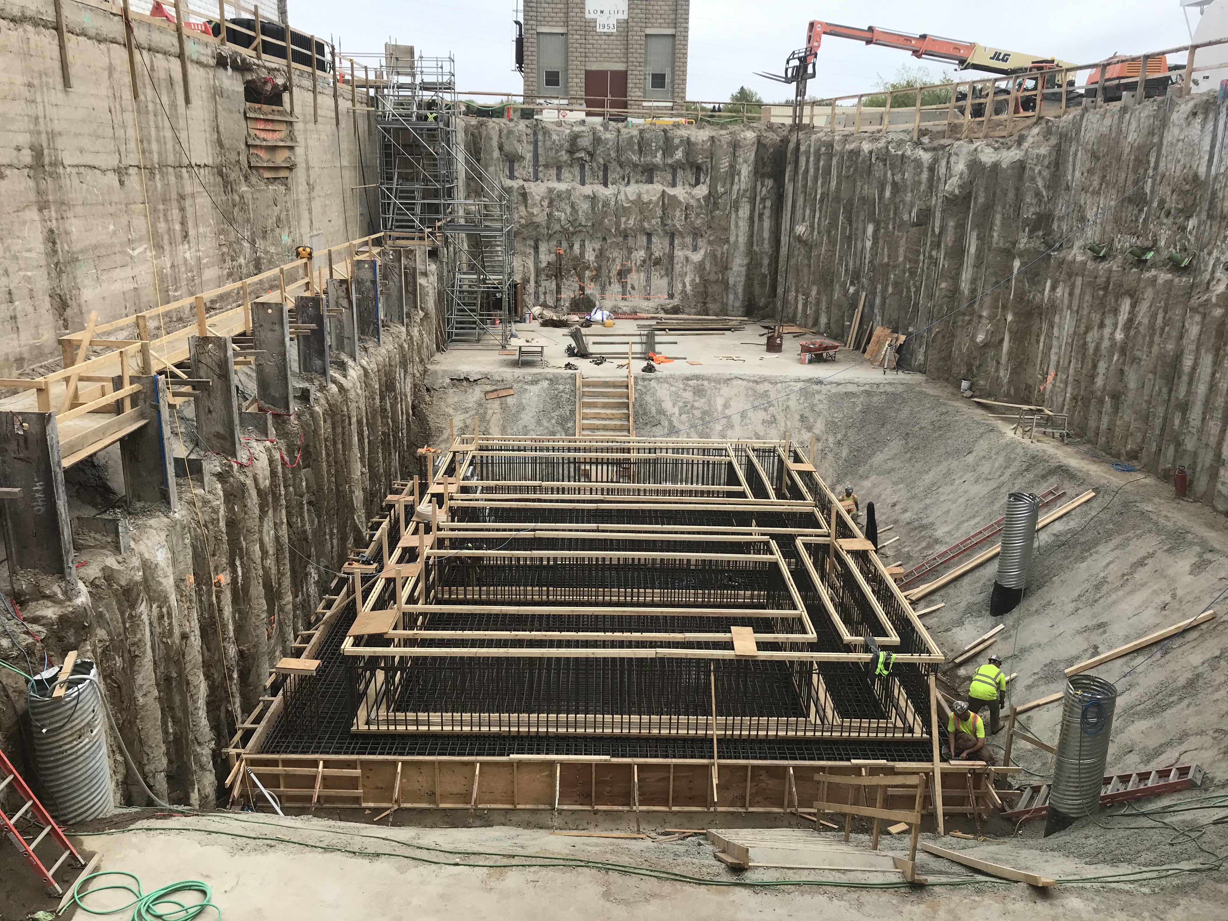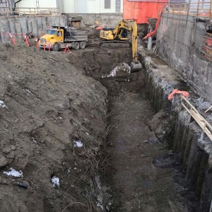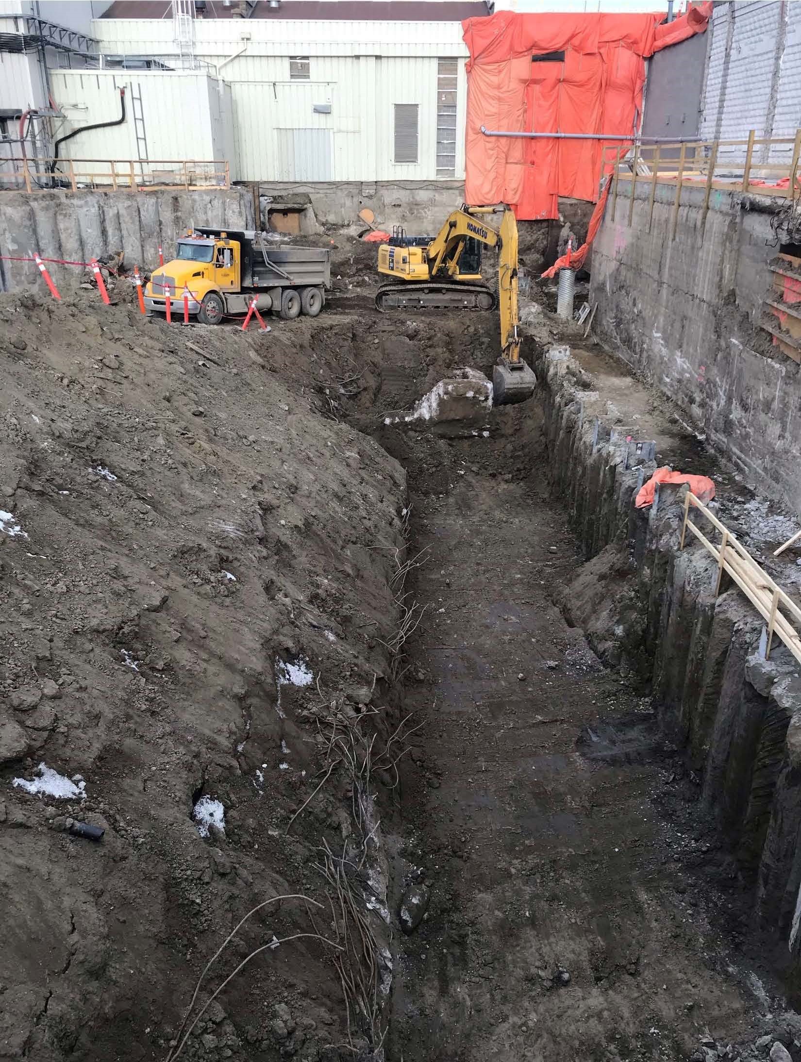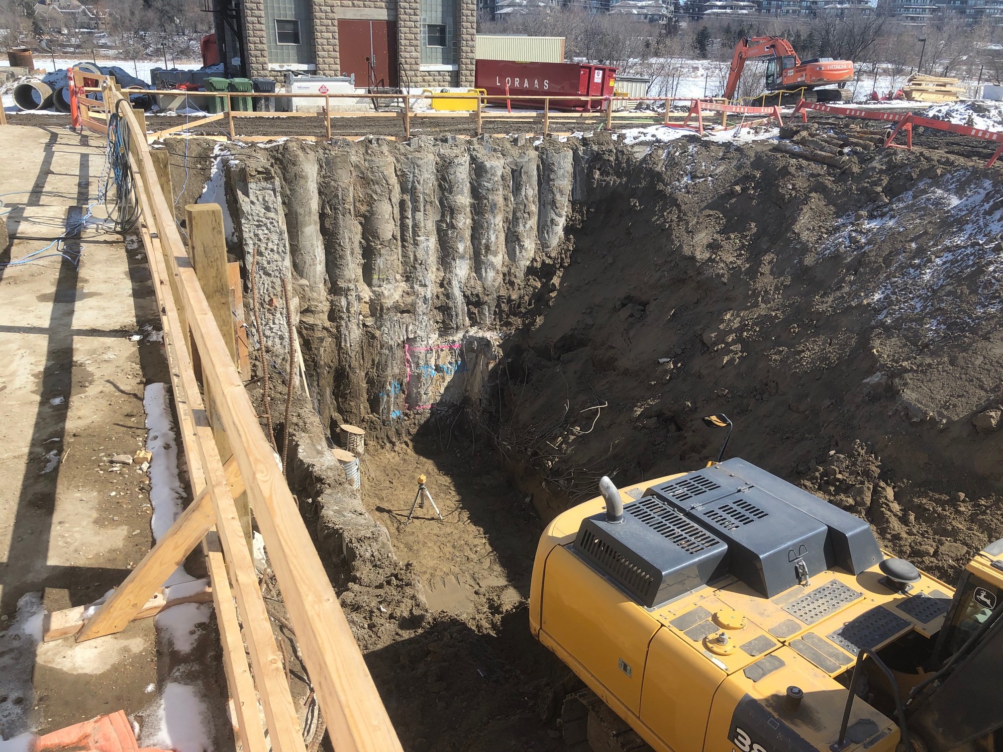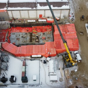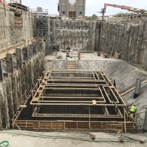 - 12 m deep four sided shoring walls required to construct the deep foundations and pump wells due to the new structures below grade depth and close proximity to the existing structures